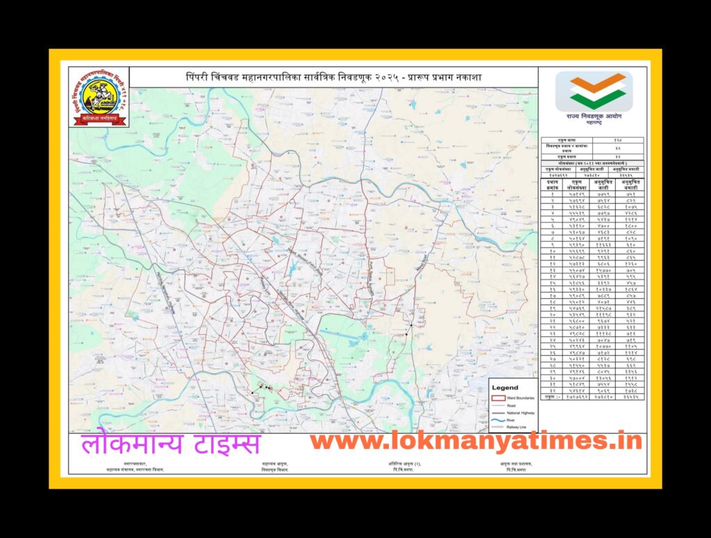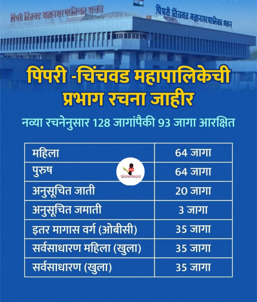 आगामी पिंपरी-चिंचवड महापालिका निवडणुकीसाठी प्रारुप प्रभाग रचना शुक्रवारी प्रसिद्ध करण्यात आली. त्यानुसार २०१७ च्या निवडणुकीप्रमाणेच ३२ प्रभाग आणि १२८ नगरसेवक असणार आहेत. प्रभाग क्रमांक नऊ हा सर्वाधिक लाेकसंख्येचा, तर प्रभाग क्रमांक पाच हा सर्वात कमी लाेकसंख्येचा आहे. या प्रभाग रचनेवर चार सप्टेंबरपर्यंत हरकती घेता येणार आहेत.