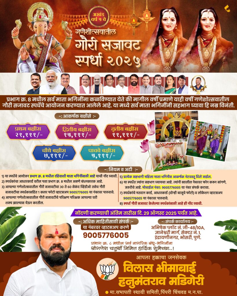 पिंपरी-चिंचवड शहरात गणेशोत्सव शांततेत आणि उत्साहात साजरा करण्यासाठी पिंपरी-चिंचवड पोलीस आयुक्तालयाने जय्यत तयारी केली आहे. गणेशोत्सव २७ ऑगस्ट २०२५ ते ६ सप्टेंबर २०२५ या कालावधीत साजरा होणार आहे. या वर्षी आयुक्तालयाच्या हद्दीत २,१४६ सार्वजनिक गणपती आणि २,६५,२७४ घरगुती गणपतींची स्थापना होणार आहे. सार्वजनिक गणेश विसर्जन ४५ घाटांवर होणार असून, सातव्या दिवशी ५२१ गणपती, नवव्या दिवशी २३६ गणपती, दहाव्या दिवशी ३७३ गणपती, अकराव्या दिवशी ९५९ गणपतींचे विसर्जन होणार आहे.
