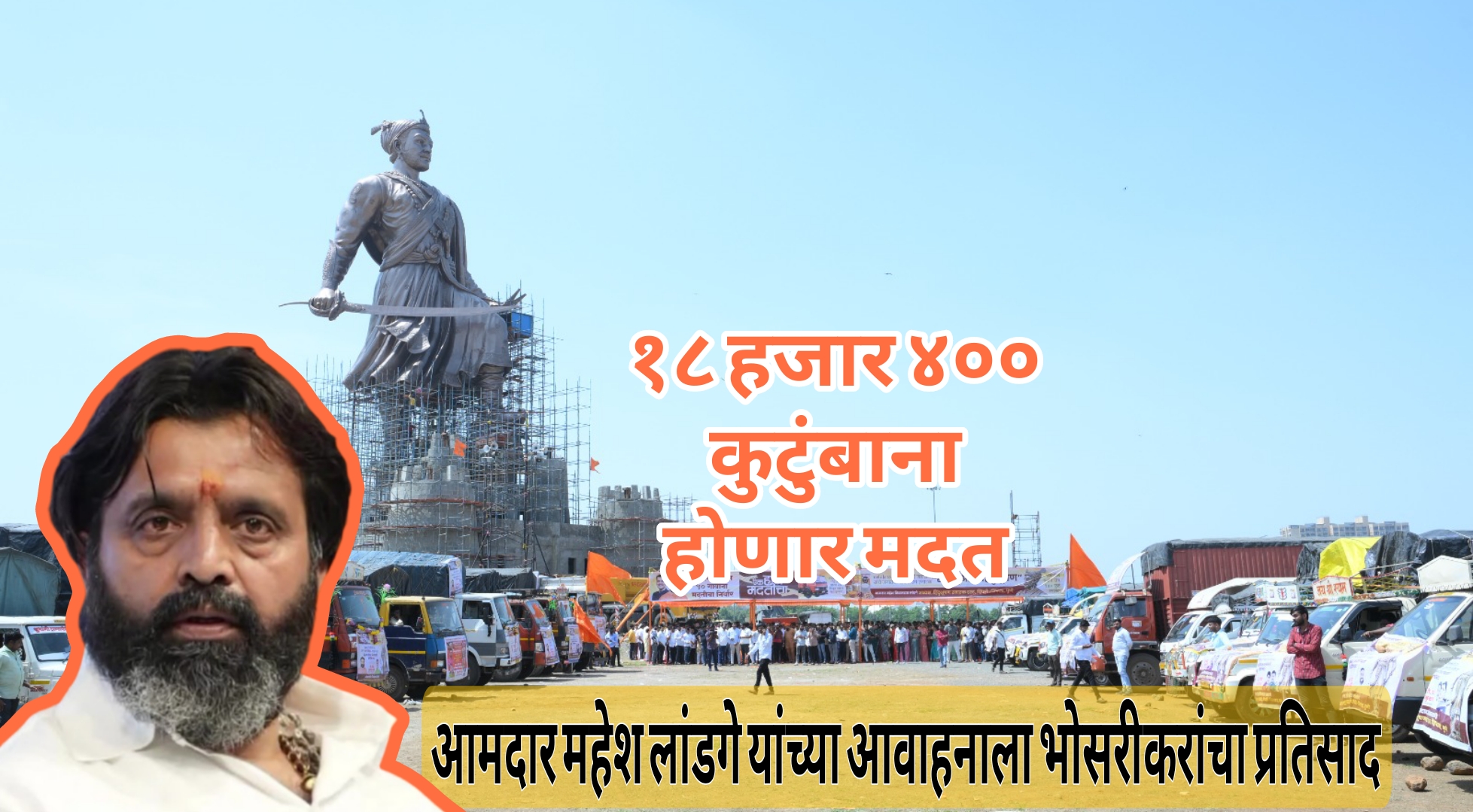 धर्मवीर छत्रपती संभाजी महाराज आंतरराष्ट्रीय औद्योगिक प्रदर्शन केंद्र, मोशी येथे गाड्यांचे पूजन करण्यात आले आणि मदत मराठवाड्यात रवाना झाली. यावेळी आमदार महेश लांडगे आणि भाजपाचे आजी-माजी पदाधिकारी तसेच हिंदुभूषण स्मारक ट्रस्टचे पदाधिकारी उपस्थित होते. मराठवाड्यातील पूरग्रस्त कुटुंबांना मदतीचे कीट वितरीत करण्यात येणार आहे. त्यासाठी ५० गाड्या आणि प्रत्येक वाहनासोबत चार ते पाच स्वयंसेवक असे ३०० सहकाऱ्यांसह ही मदत रवाना केली आहे.