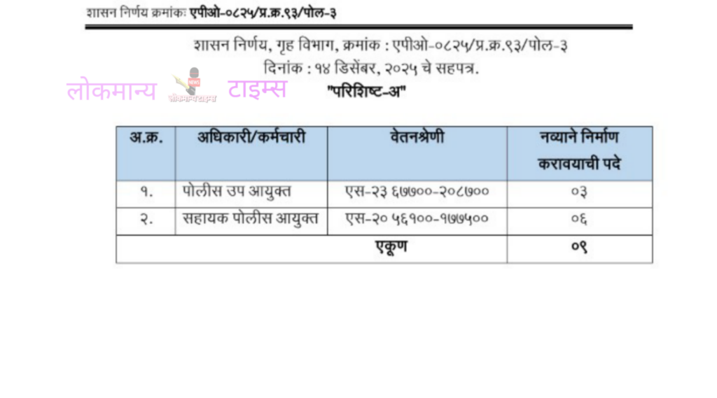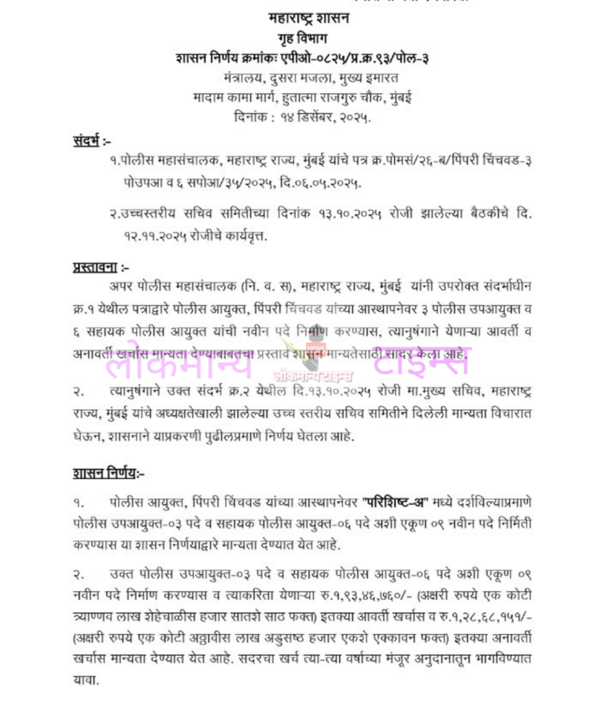 या नव्या पदांमुळे पिंपरी-चिंचवड शहरातील वाढती लोकसंख्या, औद्योगिक विस्तार आणि गुन्हेगारीच्या आव्हानांना अधिक प्रभावीपणे तोंड देता येणार असून, पोलीस प्रशासन अधिक सक्षम होण्यास मदत होणार आहे. सदर शासन निर्णय महाराष्ट्र शासनाच्या अधिकृत संकेतस्थळावर उपलब्ध असून तो डिजिटल स्वाक्षरीने प्रमाणित करण्यात आला आहे.