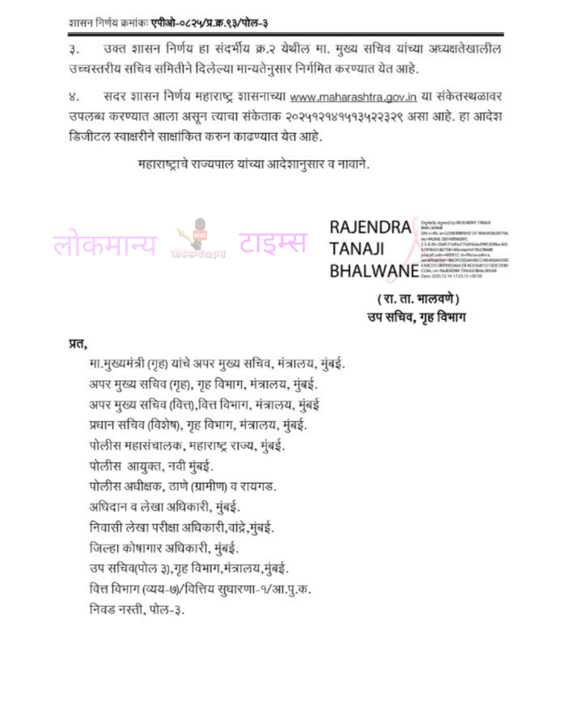 पोलीस महासंचालक, महाराष्ट्र राज्य यांच्या प्रस्तावानुसार तसेच मुख्य सचिवांच्या अध्यक्षतेखालील उच्चस्तरीय सचिव समितीच्या मान्यतेनंतर हा निर्णय घेण्यात आला आहे.